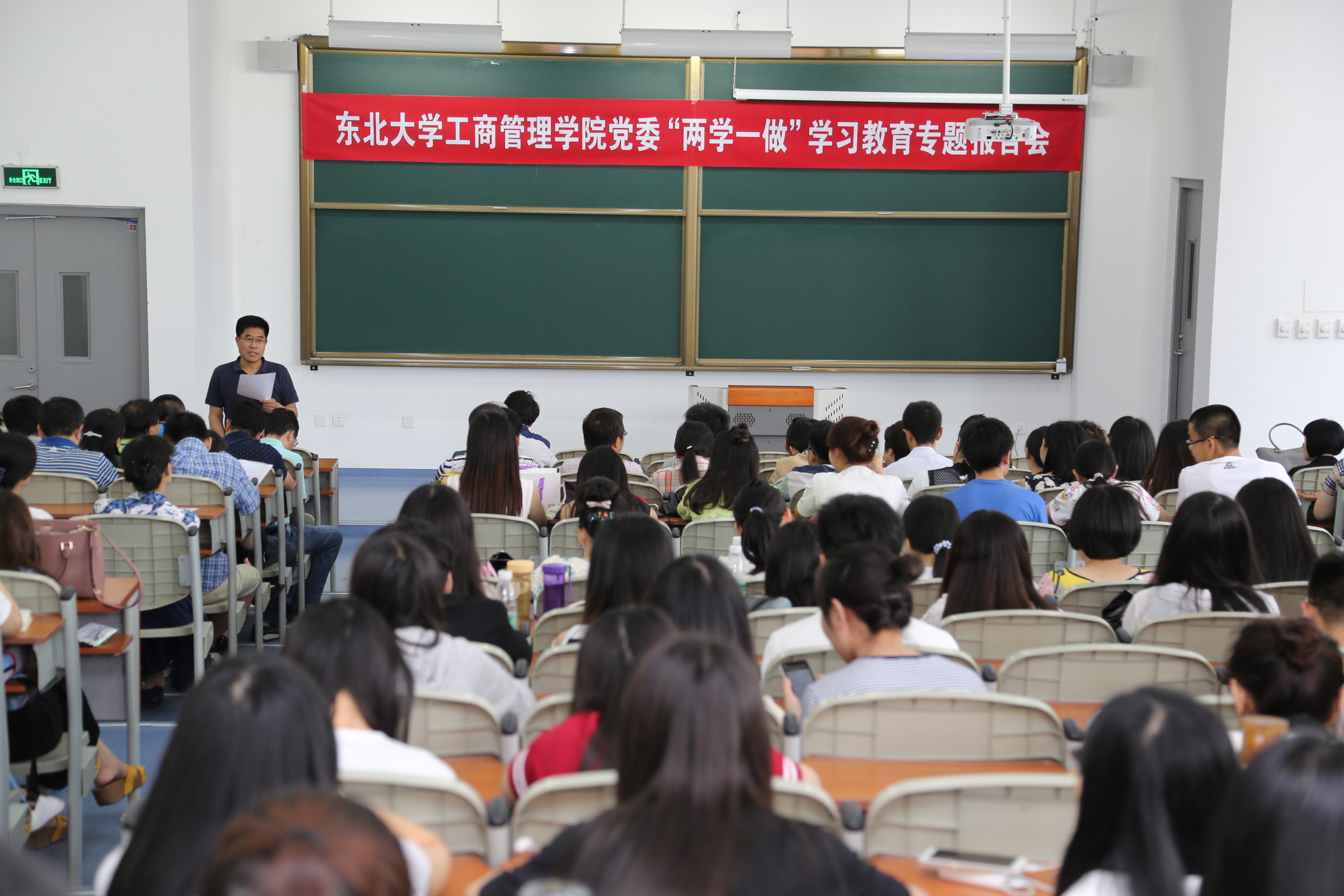 按照学校党委有关“两学一做”学习教育的要求和学院党委《实施方案》的安排,6月23日工商管理学院党委举办了“两学一做”学习教育专题报告会,邀请马克思主义学院院长田鹏颖教授以“五大发展理念”引领新发展为题作报告,全院教职工党员、学生党员代表近200人参加了报告会,报告会由学院党委书记郝树满主持。
