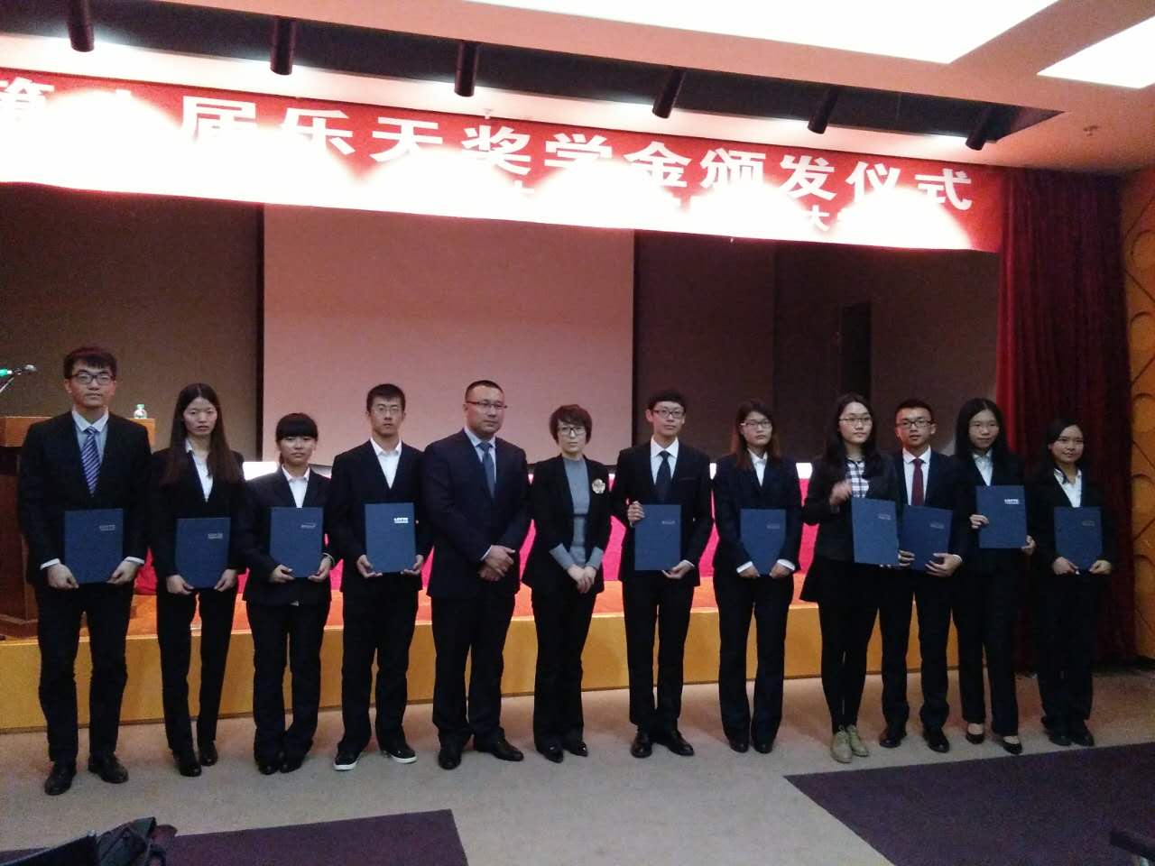 主持人播放了乐天集团宣传片,介绍了乐天集团的发展历程和企业文化,向大家展现了这个有着高度社会责任感的五百强企业。到场的领导来宾致辞,对获得乐天奖学金的同学们表示祝贺,欢迎他们加入乐天集团的大家庭,奉献社会、服务社会。工管学院14级金融专业刘广合作为东北大学学生代表发言,表达了对乐天财团的感谢,表示能够获得乐天奖学金是对他本学年学习的最大认可,他将继续努力,踏实进取,争取更大的进步。到场领导嘉宾为获奖同学颁奖,并合影留念。