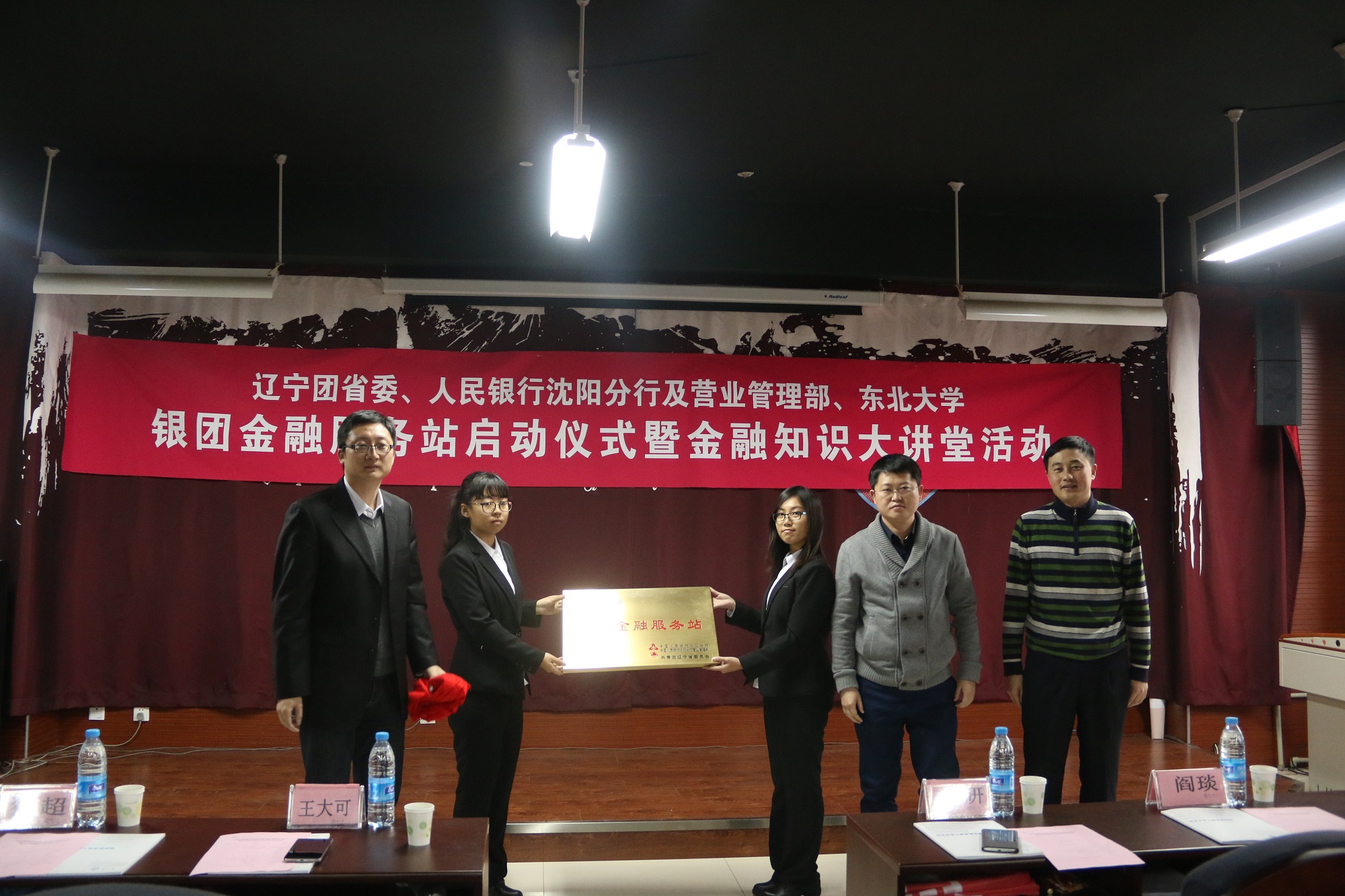 中国人民银行沈阳分行机关团委书记王骁羿介绍了银团金融服务站项目以及本次活动的主要内容与目的。启动仪式上,王大可、闫研、徐超共同为“银团金融服务站”揭匾。沈阳分行征信管理处崔冬以“征信与生活”为主题,以征信名片、微电影的形式就“征信的重要性”、“信用报告的查询方法”和“怎样看懂信用报告”等问题进行宣传。营业管理部货币金银处邓嘉宁通过比较2015年版与2005年版的100元人民币,向现场同学科普2015版人民币防伪特征,介绍了识别假币的方法,进行了反假币金融知识和诚信教育宣传。招商银行沈阳分行团委书记郭丹从个人心得谈起,和学生分享了银行工作分类及金融机构招聘相关问题,对“如何选择适合自己的职位”进行解答,传授了毕业生求职技巧。