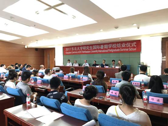 7月14日上午,2017东北大学研究生国际暑期学校结业仪式在汉卿会堂举行。爱尔兰都柏林大学Bernard Pierce教授、东北大学研究生院常务副院长杨光红教授、副院长兼党委研究生工作部部长刘宏林研究员、国际合作与交流处副处长李伟及工商管理学院院长马钦海教授、党委书记郝树满副教授参加了仪式。