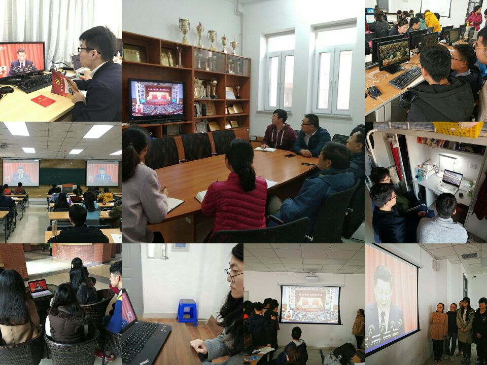 10月18日上午9:00,中国共产党第十九次全国代表大会在北京人民大会堂开幕。工商管理学院学生党总支组织学办全体学生工作干部、各学生党支部及部分学生,在会议室、活动室及学生寝室等场所集中收看大会开幕实况,认真聆听习近平总书记代表第十八届中央委员会向党的十九大作报告。