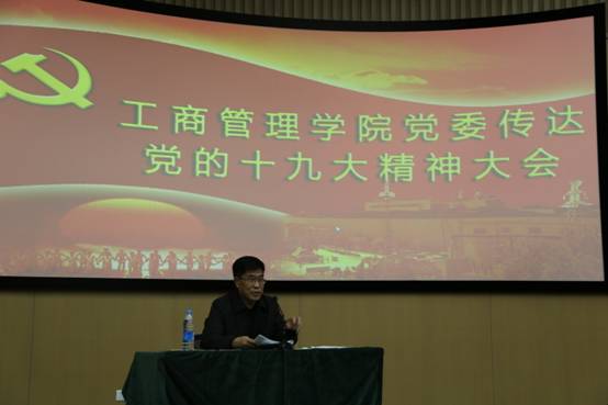 11月8日,工商管理学院党委在浑南校区文管学馆B450室举办了学习宣传党的十九大精神报告会,学院全体教职工和学生党员代表参加了报告会,会议由学院党委书记郝树满同志主持并作专题报告。