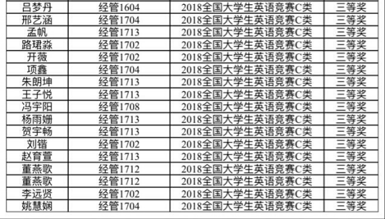 附:工商管理学院2018年全国大学生英语竞赛获奖名单