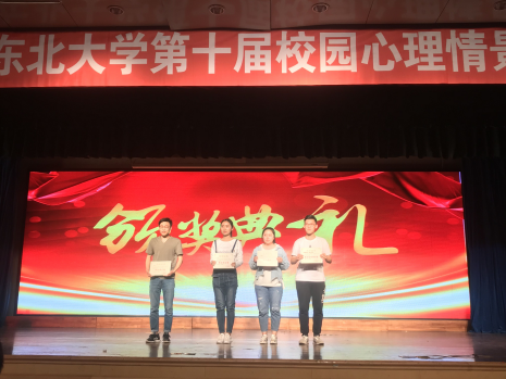 此次校园心理情景剧大赛,“用爱点亮心灯”剧组代表学院收揽东北大学第十届“心晴拾光”大学生校园心理情景剧大赛一等奖、“最佳宣传设计奖”两项团体奖。此外,吴佳慧和冯婧文分别获得“最佳女主角”和“最佳编剧”的两项单项奖,宋静老师获得优秀指导教师。我院“爱心天使”剧组获优秀奖。