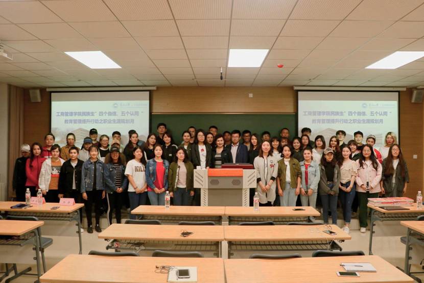 5月27日18:30,工商管理学院疆藏籍少数民族生教育管理提升行动之职业生涯规划月活动于一号楼B 207成功举行。工商管理学院党委副书记兼副院长严立宁,新疆内派老师阿米娜、林宏磊以及学生工作办公室相关负责同志出席本次活动。学院全体疆藏籍少数民族学生参会。