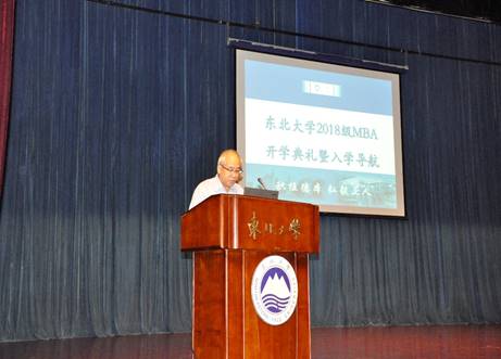 随后,由东北大学工商管理学院院长马钦海教师致辞,马院长首先衷心祝贺和热烈欢迎2018级MBA学员加入东北大学工商管理学院的大家庭,感谢各位学员选择了东北大学MBA教育项目。马院长指出,通过学习可以使自我不断完善,进步,掌握更强的本领。2018级新学员入学恰逢东北大学建校95周年,在此共同祝愿东北大学桃李满天下,各项事业蓬勃发展。在如今充满挑战和应对的社会,要求每名学员努力成为工商管理专业人士,成为负责任的企业管理者,第一,要具有自省意识;第二,具有经济创造力和创新的企业家精神;第三,要具有道德的人类发展的领导力;第四,具有迎合社会价值体系的才能。