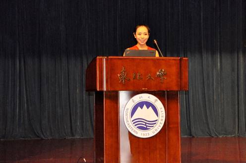 开学典礼的第六项是由2018级MBA新生代表舒畅发言,她首先代表全体新生向尊敬的领导和老师们致以最崇高的敬意。其实她阐述了自己为什么读MBA,以及为什么选择东北大学读MBA,希望各位新学员能够在这个飞速发展和充满机遇、挑战的时代,以梦为马,忠诚担当,创新实干,奋斗自强!