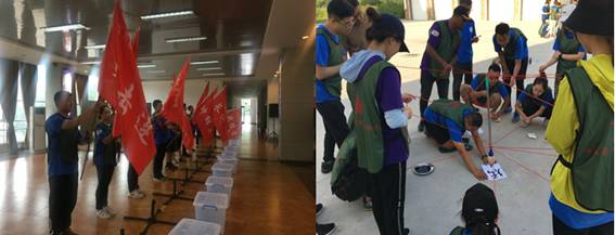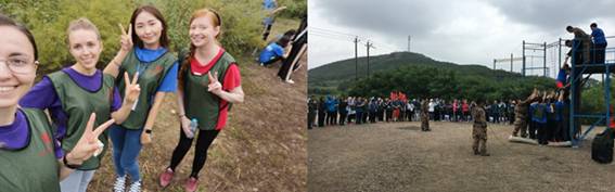 到达训练营地后,教官们首先向所有学员介绍了红五星拓展训练营的训练纪律、誓词、营歌等内容。在教官的激情带领下,全体学员开始了破冰训练,学员们迅速“归零”,放下自我。没有职业的差异、没有年龄的差距、更没有身份的高低,无不彰显着2018级新生满溢的青春活力。