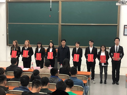 蒋忠中发表讲话,充分肯定了商英讲堂活动取得的成果,指出商英讲堂是展现管院学生风采、提升学生综合能力、专业素养的良好平台。蒋忠中宣读了表彰名单,郝树满为优秀个人代表及优秀团支部代表颁奖。2016级优秀学生韩蕊妍、刘志,2017级优秀学生李晨阳、孟帆、孙拯地代表上期商英讲堂优秀学员发表感想,感谢商英讲堂提供了展示自我的机会,并鼓励同学们继续发愤图强。2018级学生李天泽代表本期商英讲堂学员发言,表达了对商英讲堂活动的期待与向往。