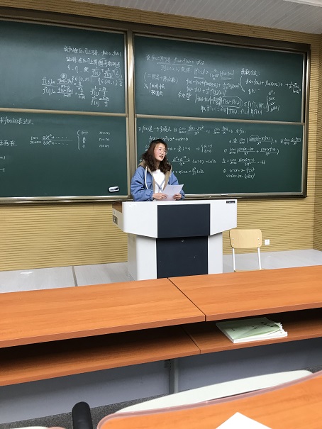 接着,郑雪同学开始讲解有关“极限与导数计算”部分的知识点与例题。她分享了其总结的常用技巧,并且针对书中不多应用的方法给出几道相关例题并作出讲解,让同学们对这类方法能够灵活运用,提高做题速度与效率。