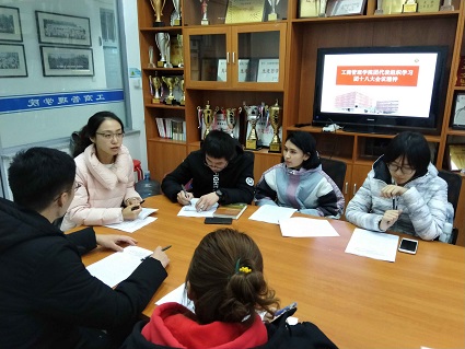王鹤棋带领同学们深入学习了团十八大报告中的相关内容,她指出同学们应把贯彻落实团的十八大精神作为当前和今后一个时期重要的学习工作内容,切实把思想和行动统一到团的十八大精神上来。之后,王鹤棋向团代表详细介绍了共青团东北大学第十九次代表大会,表达了对团代表的殷切期望,希望他们应以良好的精神面貌参加团代会,展现出商英学子自信自强的青春风采,并鼓励他们充分发挥代表作用,全面发展,为学校“双一流”大学建设贡献力量。
