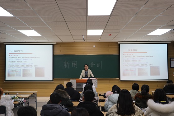 2月12日18:30,工商管理学院“高校新闻写作基础”培训会于一号楼B107室成功举办,校党委宣传部校报编辑部王钰慧担任本次培训主讲人。工商管理学院团委书记王鹤棋出席本次活动,2017、2018级各团支部团支书、院团委学生会新闻部成员及各中心联络员参与本次培训。