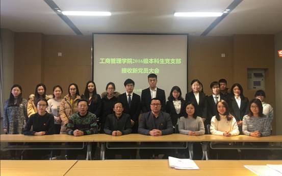 12月10日中午,工商管理学院2016级本科生党支部召开接收新党员大会。学院党委副书记兼副院长严立宁、学生办各位老师以及2016级部分入党积极分子代表列席本次会议,会议由2016级本科生党支部书记宋静主持。会上,党支部书记宋静对接收预备党员程序等提出了要求和大会的情况介绍。