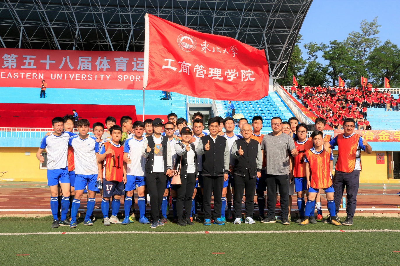 5月24日6:50,工商管理学院院长马钦海、学院党委书记郝树满于东北大学南湖校区五四体育场慰问运动会参赛选手及志愿服务工作者。