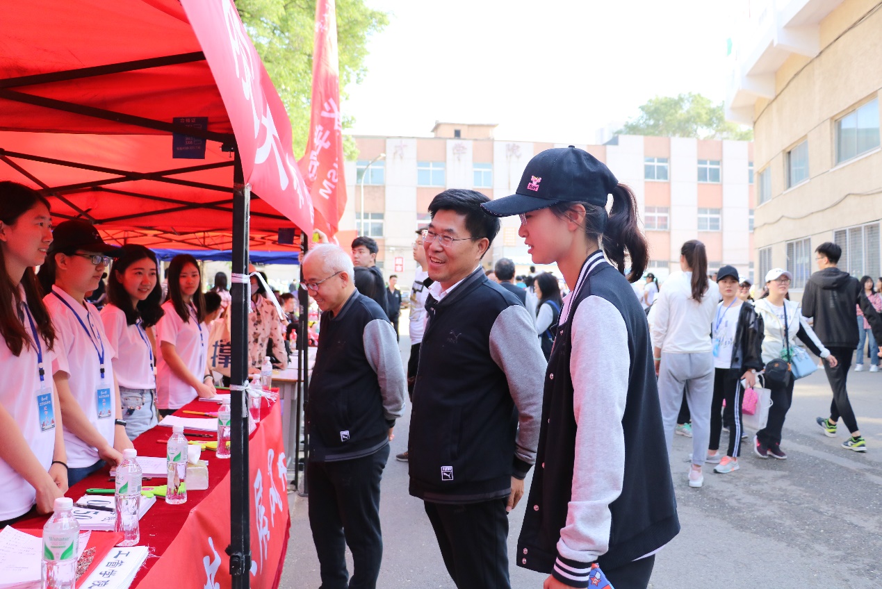 随后,学院领导来到五四体育场东侧志愿服务站,对志愿服务人员进行亲切慰问。对于志愿服务工作者,马钦海给予了高度评价,他指出赛场工作者的尽职尽责是成功举办此次运动盛会的关键,各部门需紧密联系、精诚合作,为学院运动健儿提供充足物资保证和优质服务资源。