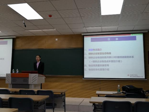 5月11日上午,侯海云经理结合自己在物流领域的多年工作经验以及钢铁企业的物流运作现状,为同学们做了“钢铁企业智慧生态物流系统的构建与实施”专题讲座。