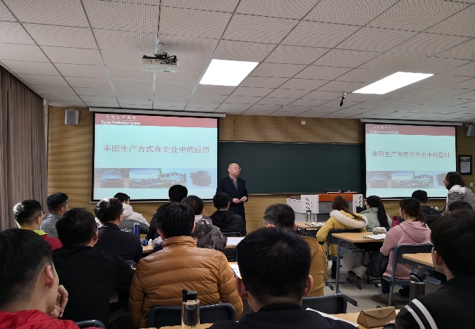 3月16日上午,牛敬国经理结合自身在日本丰田学习的体会和在华晨汽车有限公司10余载的工作经历,为同学们做了“丰田生产方式在企业中的应用”专题讲座,分享了丰田生产方式在企业生产过程中的具体应用案例。