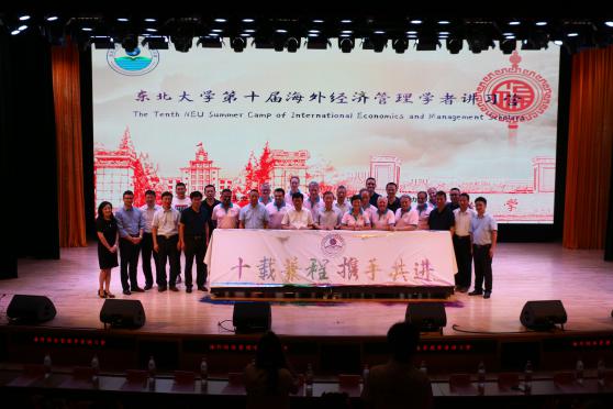 7月8日下午,东北大学第十届海外经济管理学者讲习营开营典礼于浑南校区图书馆报告厅举行。东北大学副校长孙雷,东北大学原副校长王宛山,讲习营发起人赵荔女士,校东北振兴研究院常务副院长李凯、党校常务副校长初青松、学生工作处处长马天威、国际合作与交流处副处长韩忠军、团委副书记刘海军、教务处副处长滕超、创新创业学院副院长王刚、工商管理学院党委书记郝树满、副院长赵红梅、党委副书记兼副院长严立宁、院长助理蒋忠中,及Ken Schoolland、Per Bylund、Patrick Mardini等十二位来自世界各地的经济学界知名教授出席活动。第十届讲习营全体学员参加开营典礼。