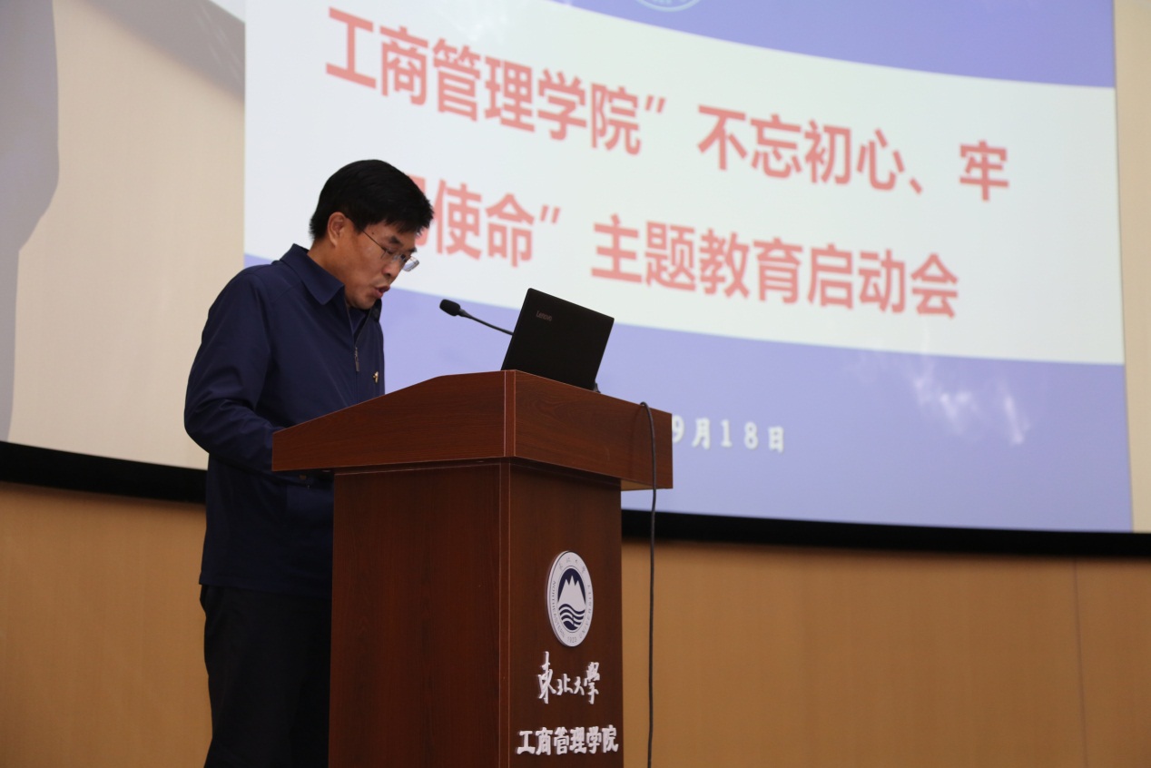 2019年9月18日,工商管理学院在浑南校区文管学馆B450召开了“不忘初心、牢记使命”主题教育启动会。学院领导班子成员、全体教工党员和学生党员代表参加了会议。学校主题教育巡回检查组组长王立慧同志出席会议。学院院长蒋忠中主持会议。