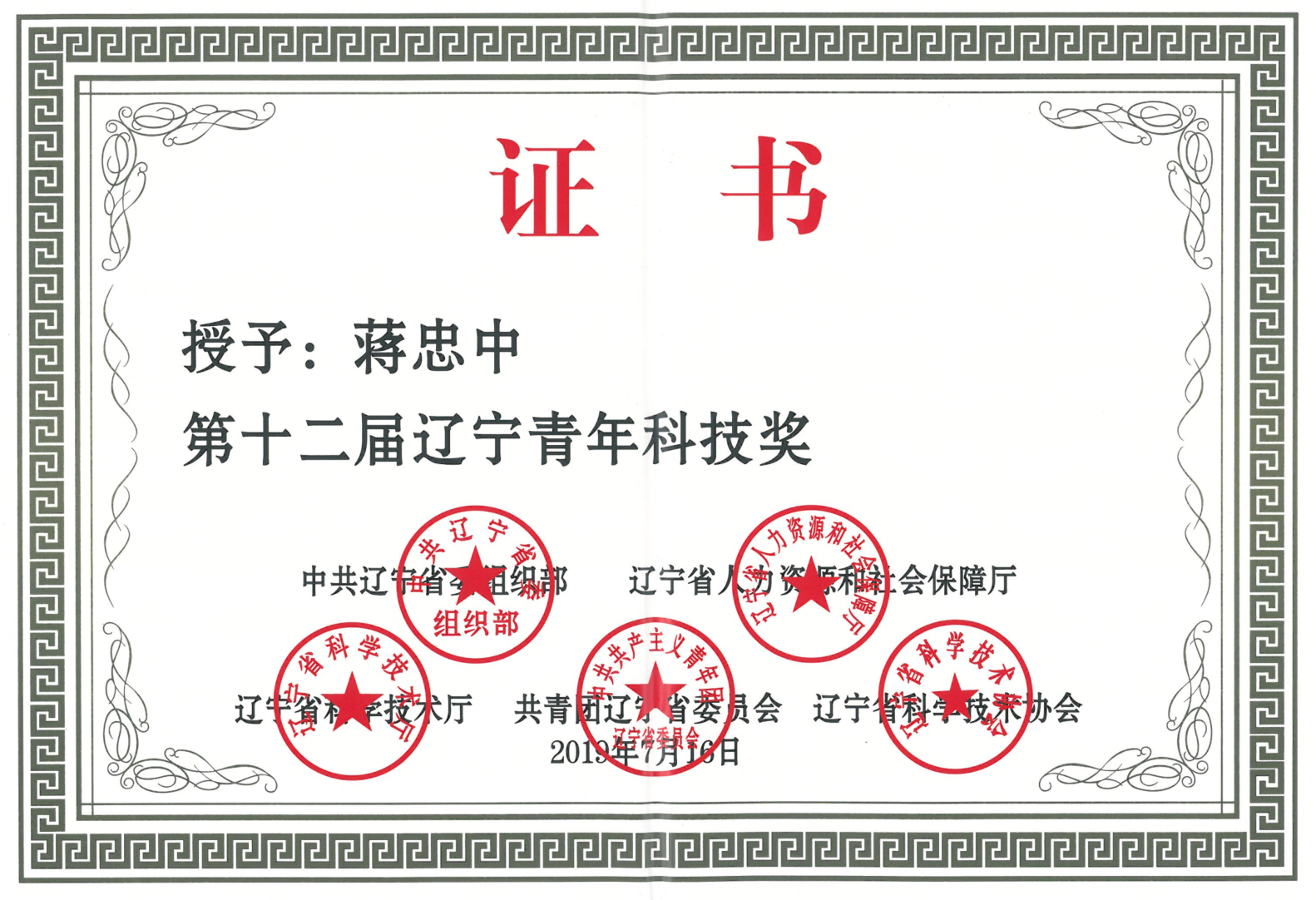 近日,第十二届辽宁青年科技奖评选结果公布,我院蒋忠中教授榜上有名,是我校人文社科类唯一入选者(我校共两名入选者),也是我院教师首次获得该类重要奖项。