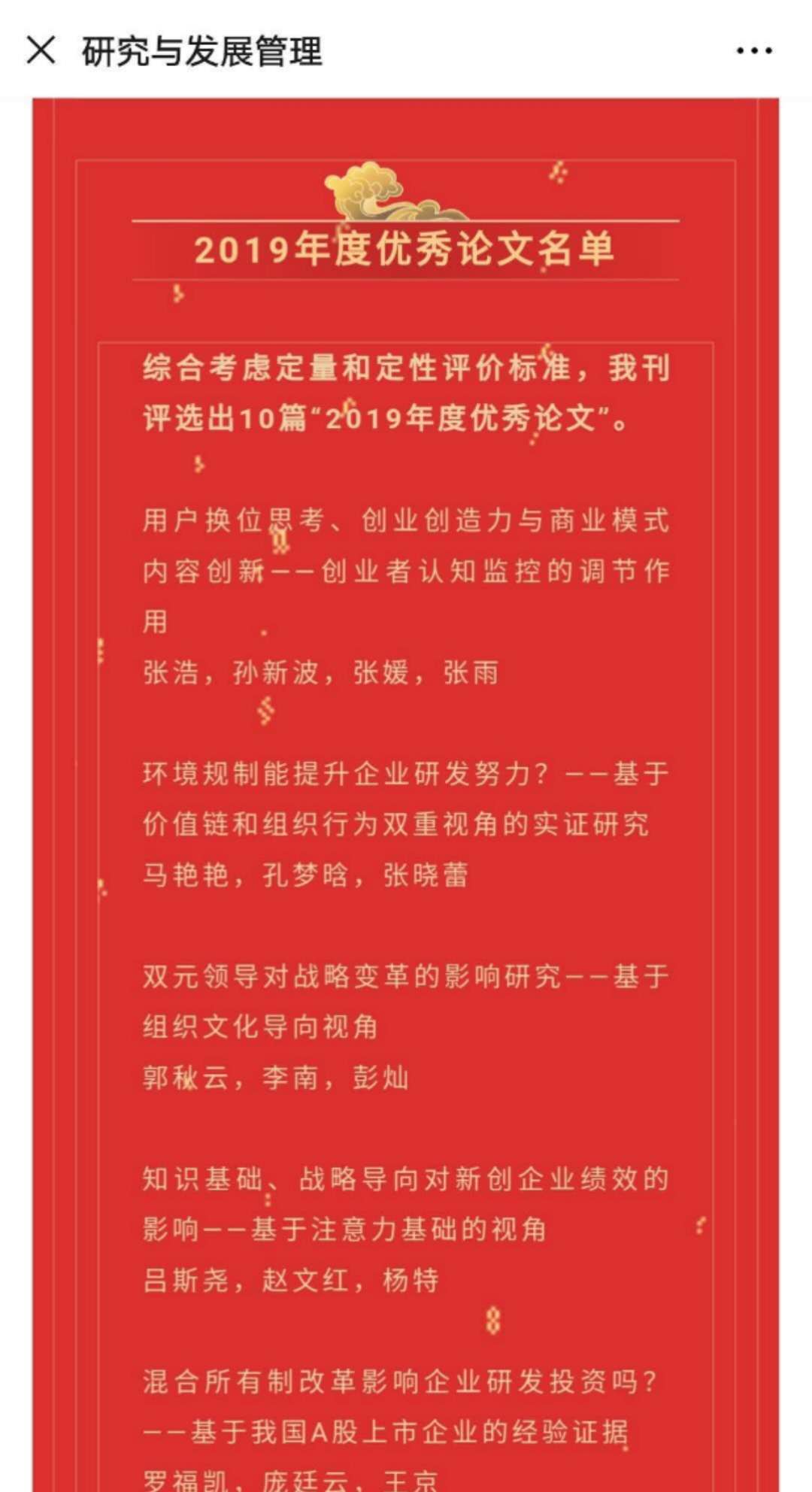 【喜报】我院孙新波教授指导论文荣获《研究与发展管理》2019年度优秀论文