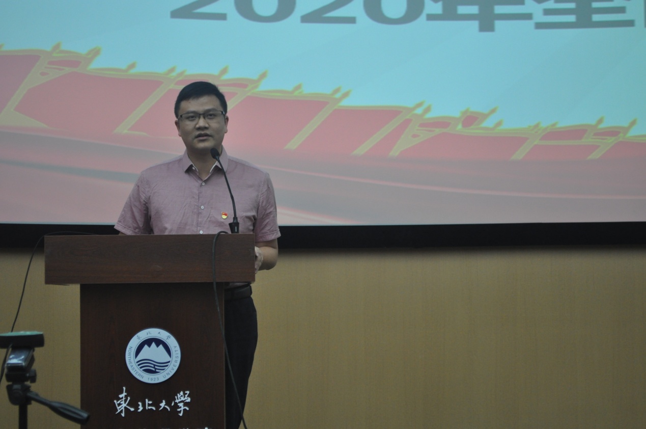 学院党委副书记、纪委书记王健代表学院党委传达了习近平总书记在十九届中央纪委四次全会上的重要讲话精神、教育系统全面从严治党工作视频会议精神和东北大学2020年全面从严治党工作会议精神,明确了当前党风廉政建设工作的重要任务和形势;对近期发生的高校领域反面典型案例进行警示、提醒和剖析;强调了学院2020年党风廉政建设重点工作。王健表示,要坚持以政治建设为统领,坚定不移强化政治监督,结合学院实际,推进党风廉政建设工作,并着力加强学院纪检干部和工作人员的专业素养与业务能力提升。