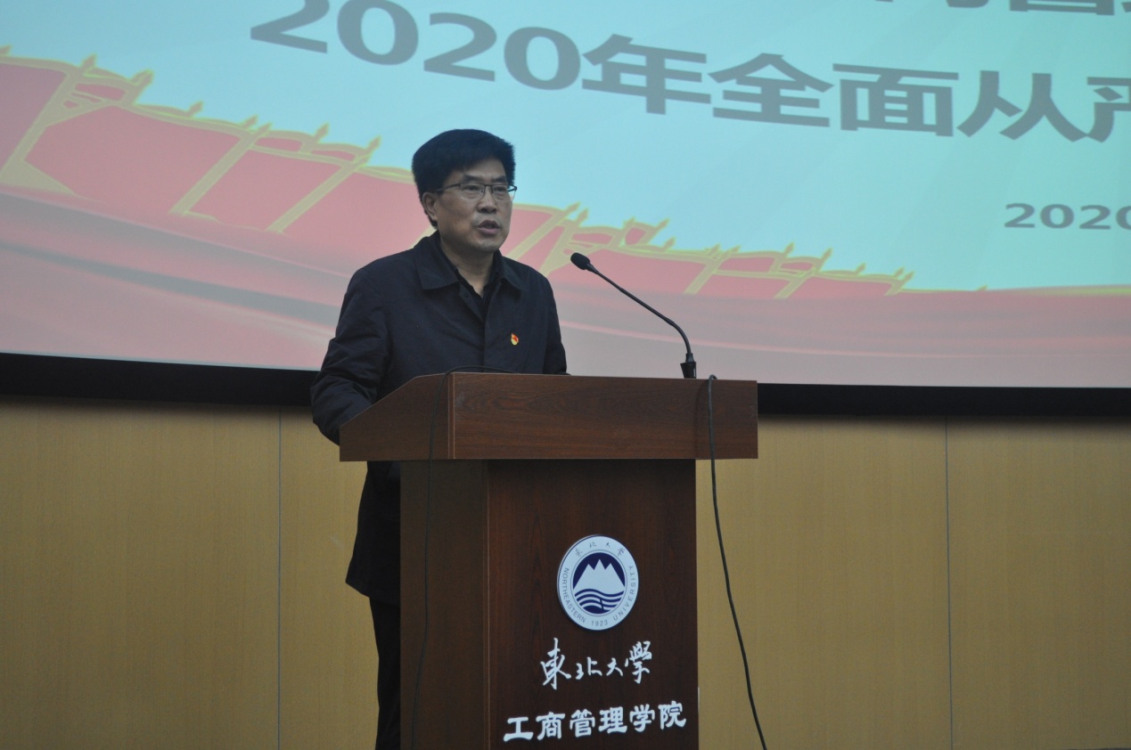 6月3日下午,工商管理学院面向全院教职工召开2020年全面从严治党工作会议。学院班子成员、党委委员、教工党支部书记、系主任、工会主席于主会场浑南校区文管学馆B450参会,机关各部门负责人于分会场文管学馆B320参会,其他教职工在线参加会议。学校纪委相关同志列席会议。会议由院长蒋忠中主持。