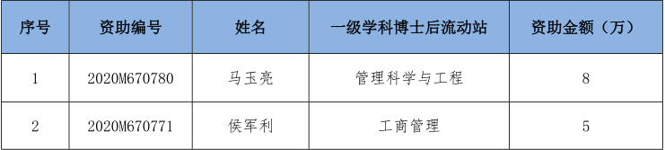 近日,中国博士后科学基金会公布了第67批面上资助人员名单,由我院蒋忠中教授、郁培丽教授作为合作导师指导的博士后马玉亮、侯军利获得资助。