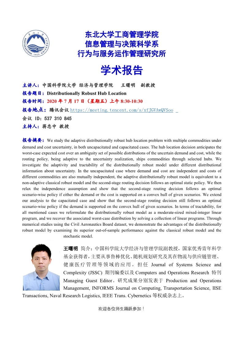 邀请中国科学院大学经济与管理学院王曙明副教授学术报告
