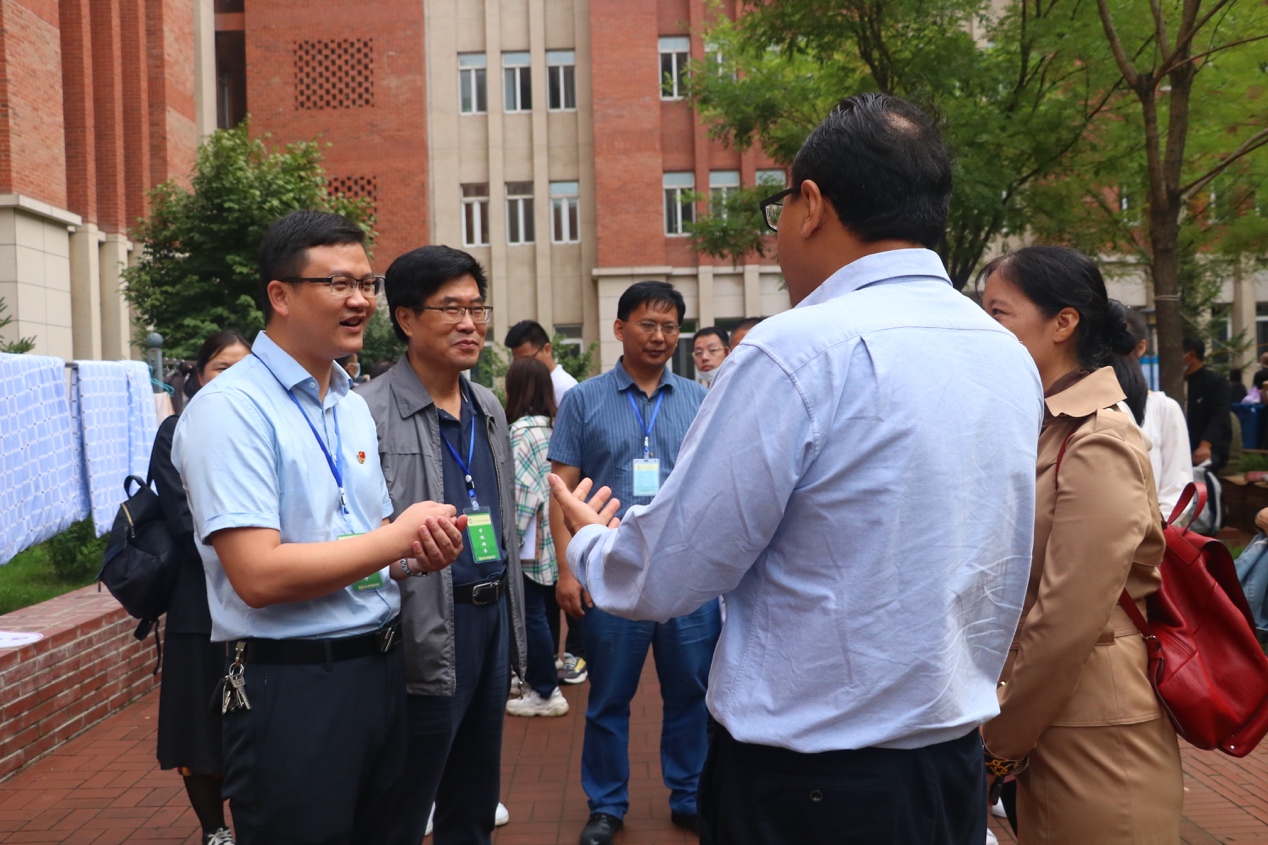 工商管理学院领导始终把学生放在心头,想学生之所想,解学生之所需,为新生带来温暖的关怀与问候。9月12日上午,学院院长蒋忠中、党委书记郝树满深入迎新现场及新生寝室,详细询问了新生报到率和接待服务流程,并向前来报到的新同学和迎新现场的志愿者表示问候。