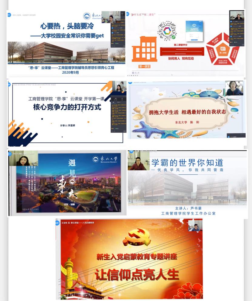 “盛景光年,梦想启航。”疫情以来,学院坚决落实教育部关于“运用好疫情防控的历史题材和现实题材,向学生讲授好属于思政课的有关内容”的要求,开展“思·享”云课堂——工商管理学院辅导员思想引领育心工程,发挥网络思政在思想引领和培育时代新人的重要作用。从9月8日起,名师汇聚网络直播间,开展“思·享”云课堂——《开学第一课》,充分发挥融入式、嵌入式、渗入式的立德树人效应,坚定不移地把“爱校、爱乡、爱国、爱人类”作为思想主线,帮助同学们快速适应大学生活以及做好疫情期间安全防护工作,还特别加入了健康教育、生命教育、入党启蒙等内容,让大学生从不同维度深刻感受“人民至上,生命至上”的崇高理念,激励他们接过先辈的旗帜一往无前,未来成长为担当民族复兴大任的时代新人。本次开学第一课参与人数达四千余人,课程互动两万多次。