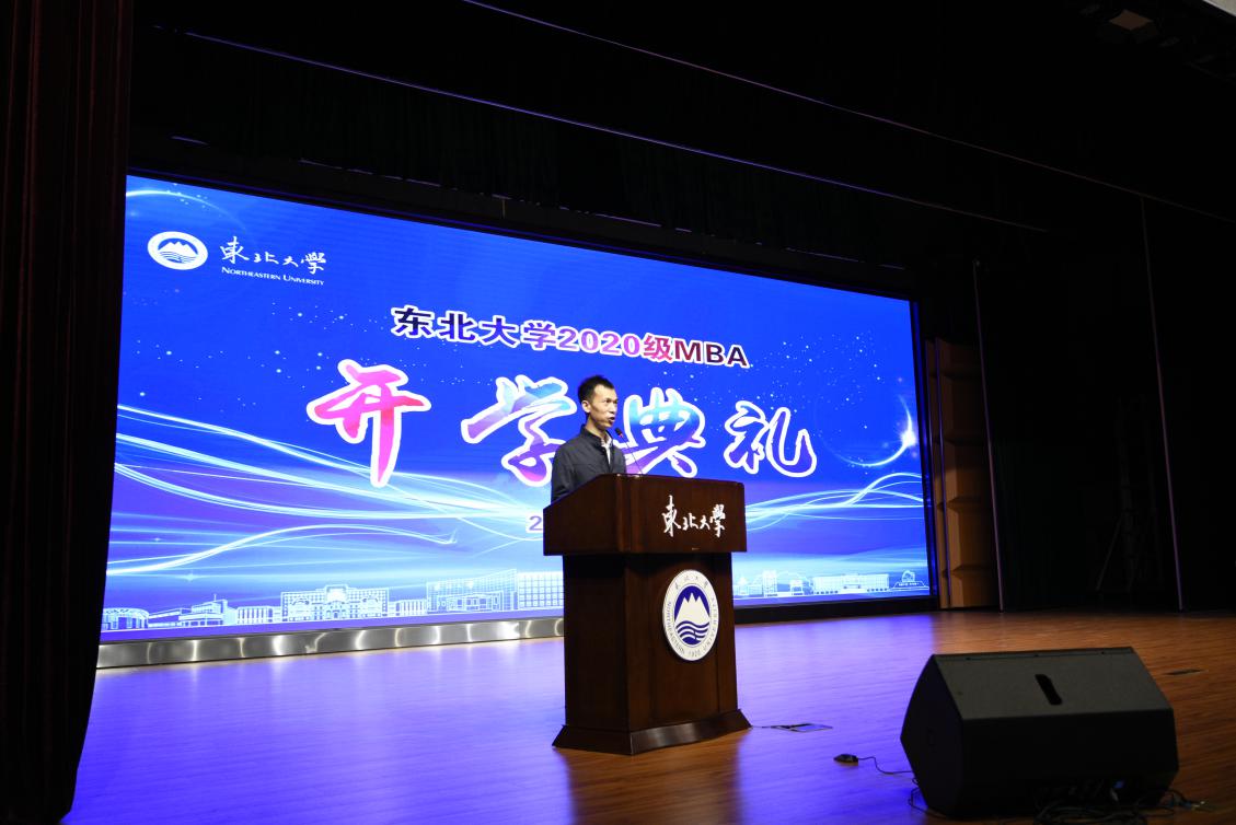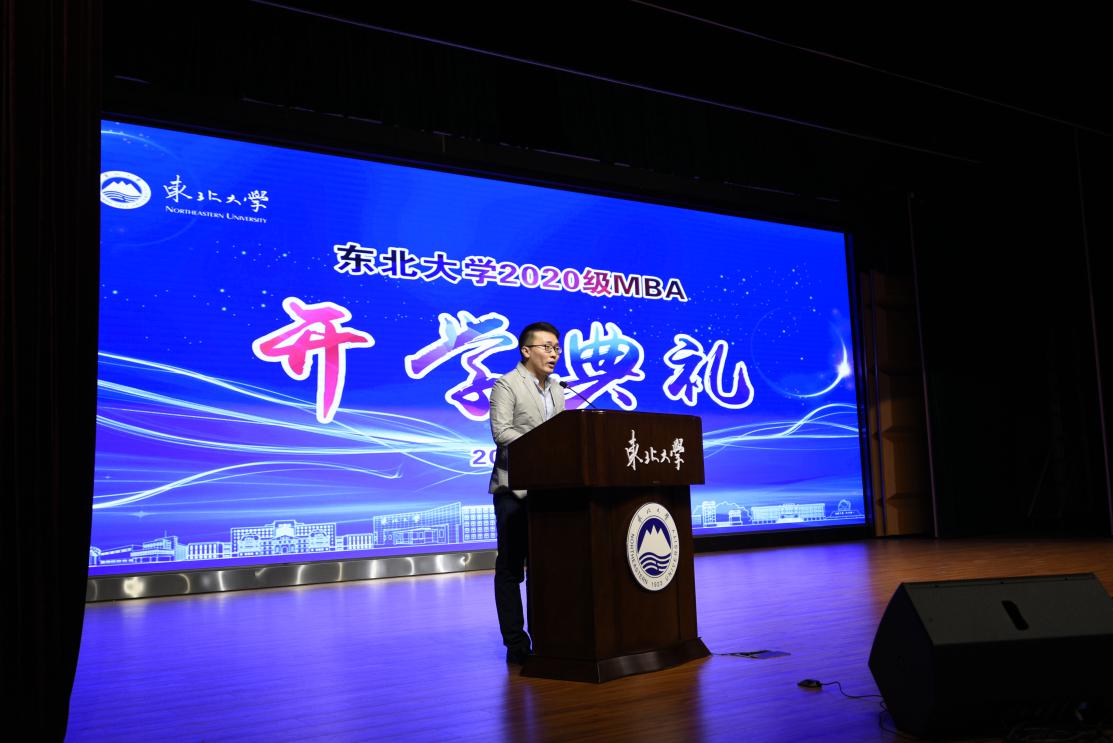 东北大学MBA校友会会长陈迪发言。陈迪代表校友会祝贺新生们的到来。他强调2020年是不平凡的一年,环境越复杂,越应该静下心来进入学习的殿堂。希望同学们能够珍惜当下,珍惜师生情,珍惜同学情,以健康为伴,多组织参与体育活动。2023年是东大百年校庆,很荣幸届时将共同见证东大百年,希望同学们时刻勉励自己,做一名合格的东大人。