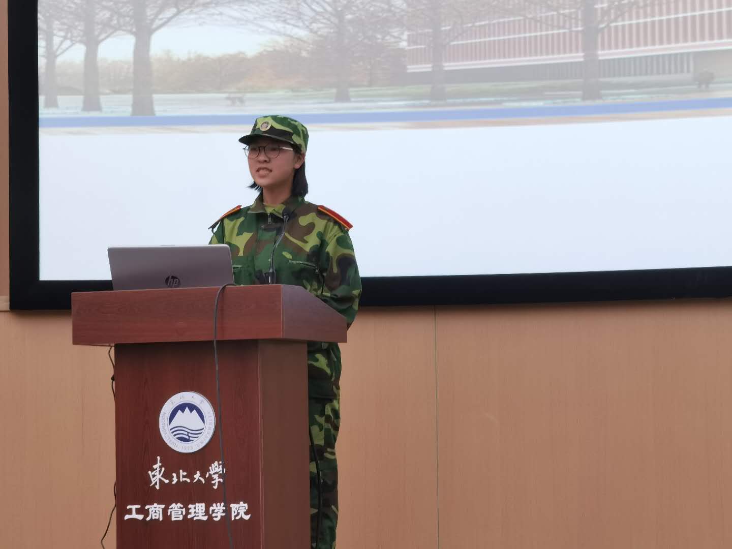 来自新疆的少数民族学生代表米尔迪力江·喀迪尔上台发言。他表示,对知识的向往激励着他来到东北大学求学。他对老师和学院表达了感谢,并对美好的大学四年生活进行了展望,承诺自己必将不忘初心,牢记使命,心系国家,勇担大任。