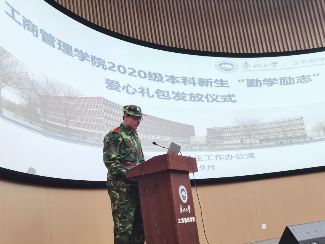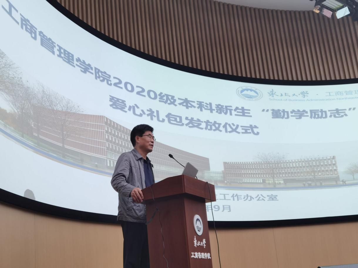高举助学之炬,积蓄铸人之力,砥砺筑梦之途。9月23日下午,工商管理学院举行了2020级本科新生“勤学励志”爱心礼包发放仪式。学校党委书记郝树满、党委副书记兼副院长严立宁及学生工作办公室相关人员出席本次大会,家庭经济困难学生代表参加会议。