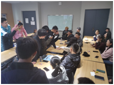 第一部分,深学“四史”环节。由团支书结合讲解与观看视频两种形式向大家逐一介绍党史、新中国史、改革开放史、社会主义发展史。内容讲解到改革开放史时穿插进行了小组讨论环节“秀出你的时代记忆”。同学们积极讨论,踊跃表达,讨论结束后,派出代表进行了总结发言。