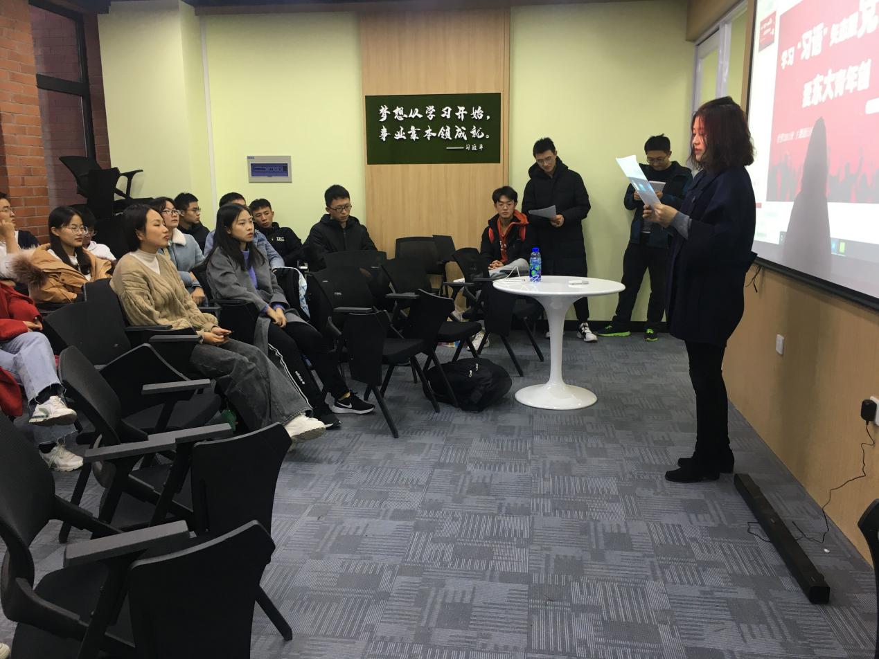 班导师杨童舒就学“习语”发表个人学习心得并和同学们交流学习体会。同学们在观看习近平总书记对青联、学联的贺信视频后根据自己学习经历谈论了自己对于“习语”的认识,并且每人分享了一句“习语”供大家思考学习。