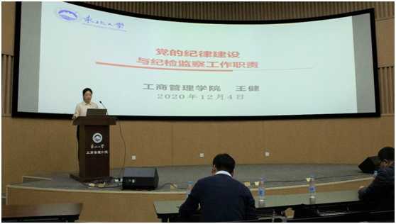 12月4日13:00,工商管理学院纪委在文管学馆B450、B320通过线上、线下同步举办“廉政教育大讲堂”活动。本次理论授课由工商管理学院党委副书记、纪委书记王健主讲,学院党委副书记、副院长严立宁、学生办全体辅导员出席。学院各学生支部纪检委员、2020级硕士生党员、第十五期青马培训班学员,共计200余人参加本次授课。