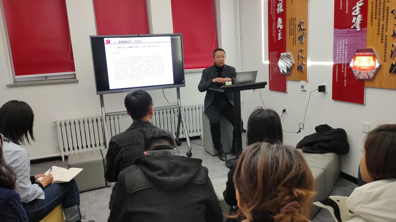 12月18日,工商管理学院学生工作办公室党支部和软件学院学生工作办公室党支部在浑南校区“一站式”党员活动室联合举行专题党课。东北大学党校常务副校长初青松应邀讲授党课《历史为什么选择了毛泽东》。软件学院党委副书记兼副院长刘春风、工商管理学院党委副书记兼副院长严立宁和支部党员参加学习。