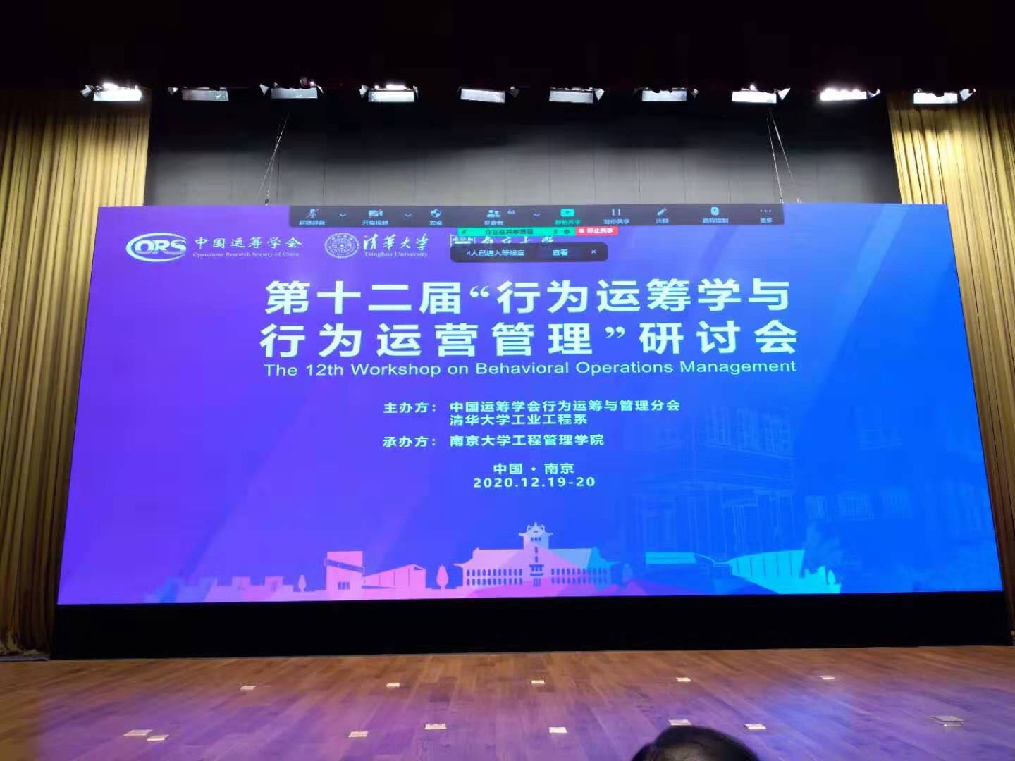2020年12月19-20日,第十二届“行为运筹学与行为运营管理”研讨会(The 12th Workshop on Behavioral Operations Management)在南京大学仙林国际会议中心召开。经过激烈竞争和优中选优的原则,会议共评选出2篇青年教师优秀论文和5篇学生优秀论文,其中,我院硕士研究生赵金龙同学荣获学生优秀论文奖并受邀做大会报告(in English)。