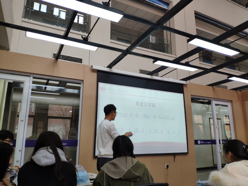 在活动过程中,团支书张璇以“重走百年路”为题对班级同学进行党史知识普及,刘畅老师与班级同学共同聆听了党史课堂,从百年党史中汲取精神与力量。在“学习雷锋”的环节中,刘畅老师和芦书豪老师共同欣赏了班级同学的手写雷锋日记、名言,希望同学们能够向雷锋同志学习,表达了对同学们的殷切期望。