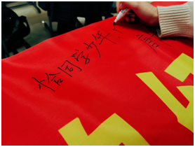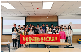 兼职辅导员张丽腾和支部成员一起将姓名和座右铭写在了上书“弘扬雷锋精神躬身红色实践”的横幅上。全体成员表态将会牢记今日所书,将雷锋精神传承下来,将自强不息、知行合一的校训践行到底。(经管2002团支部 供稿)