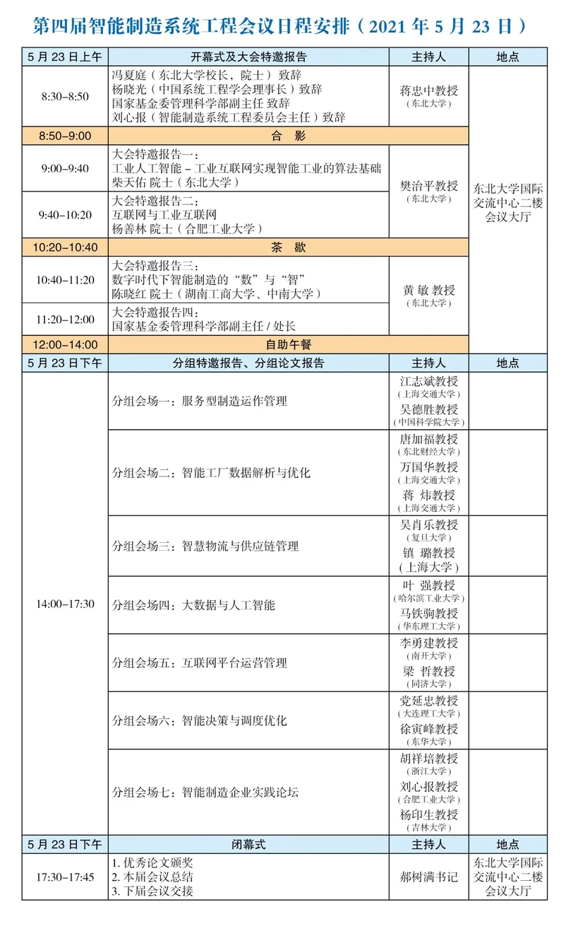 第四届智能制造系统工程学术会议由中国系统工程学会智能制造系统工程专业委员会主办、东北大学工商管理学院承办、智能工业数据解析与优化教育部重点实验室(东北大学)和辽宁管理科学研究会协办,将于2021年5月22日至23日在沈阳召开。本次会议是以“数字生态•智造未来”为主题的智能制造领域前瞻性、战略性与综合性高端学术研讨会,将邀请中国工程院柴天佑院士、杨善林院士、丁烈云院士、陈晓红院士、唐立新院士、国家自然科学基金委管理科学部领导以及数十位长江、杰青、青拔、青长、优青及企业领军人才作特邀主旨报告及特邀分组报告。会议将针对服务型制造运作管理、智能工厂数据解析与优化、智慧物流与供应链管理、大数据与人工智能决策、互联网平台运营管理、智能决策与调度优化等议题进行深入探讨数字生态下的智能制造系统工程理论与应用的前沿问题与发展方向。