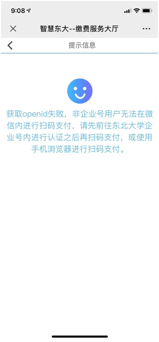 缴费时请优先使用浏览器扫描二维码,若使用微信或支付宝扫描,可能出现以下页面: