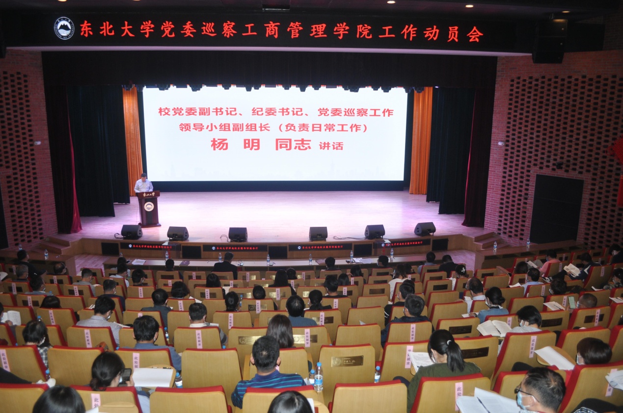 5月19日,东北大学党委第五轮巡察第一巡察组巡察工商管理学院工作动员会在浑南校区图书馆报告厅召开,校党委副书记、纪委书记、党委巡察工作领导小组负责日常工作的副组长杨明出席会议,党委第五轮巡察第一巡察组全体成员和党委巡察工作办公室相关负责同志出席会议,管理学院师生代表130余人参加会议。