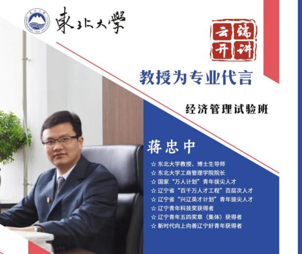 5月26日20:00,工商管理学院院长蒋忠中参加“教授为专业代言”招生宣传活动,通过线上直播的形式向广大学生及家长推介东北大学经济管理试验班。