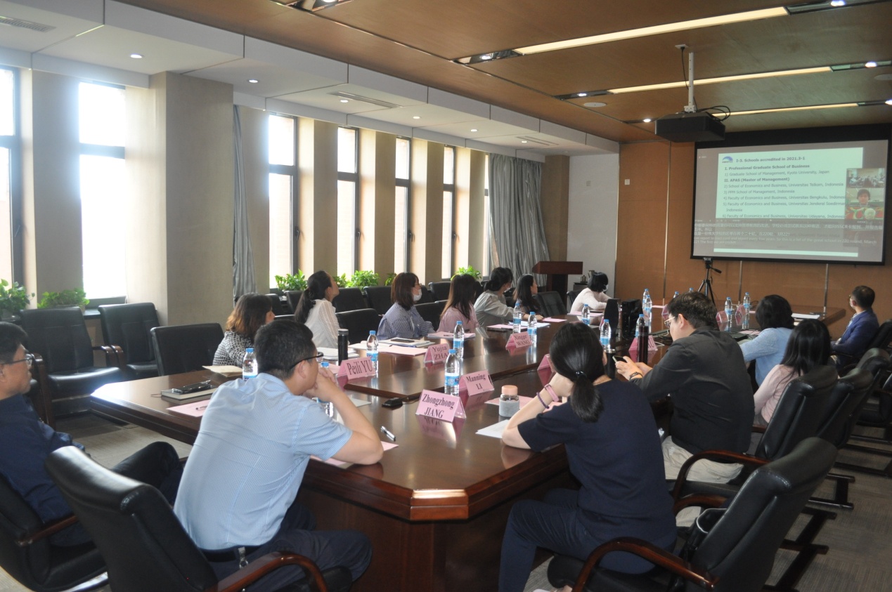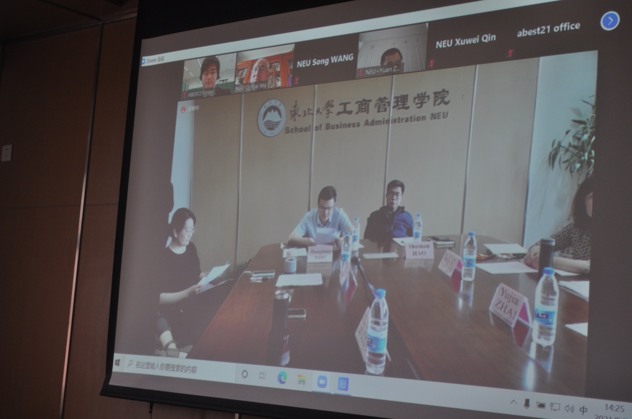 2021年5月31日下午,由ABEST21(21世纪管理教育与学术联盟)主办的“2021年ABEST21认证第二次讨论会”在线上成功举办。中日双方30余人齐聚云端,围绕深入理解认证体系及改进报告(KAIZEN Report)提交情况展开交流和研讨。工商管理学院院长蒋忠中、党委书记郝树满、副院长郁培丽、党委副书记兼纪委书记王健、前任院长马钦海、MBA(EMBA)课程项目主任王世权等参加了此次研讨会,李曼宁老师担任现场翻译。