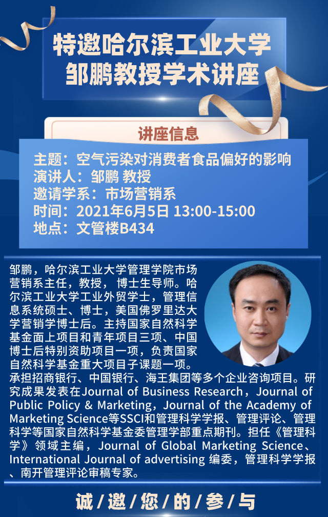 邀请哈尔滨工业大学管理学院邹鹏教授学术报告