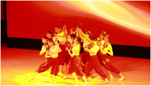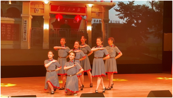 学院师生以舞蹈《映山红》、歌曲《党旗飘扬的方向》、情景讲述剧《风华》、教师舞蹈《芳华》、音诗画《进京赶考》、大合唱《不忘初心》等节目,展现了学院师生深入推进党史学习教育、守初心担使命的决心与担当。文艺汇演中,领导班子成员及教师党支部书记领诵,青年一代党员风采激扬,现场观众深受感染、深感激励。