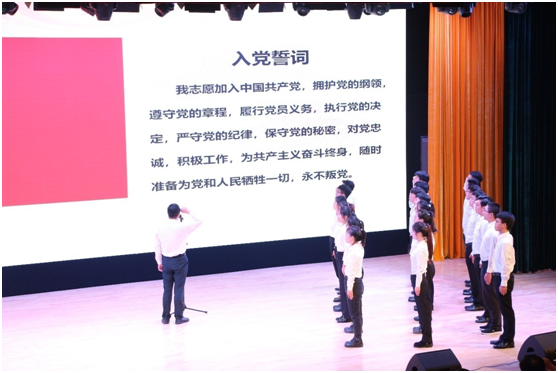 表彰大会开始,全体起立,共唱国歌,慷慨激昂的旋律拉开活动序幕;学院党委副书记、纪委书记王健宣读受学校党委表彰的先进集体和优秀个人名单以及学院表彰决定。与会嘉宾为获奖代表颁奖。优秀党员代表袁知柱与先进党支部代表黄海分别上台发言;新党员入党宣誓,老党员重温入党誓词,永葆入党初心;郝树满致辞,祝贺党的百年华诞,号召广大党员勇担使命责任,助力学院事业发展。