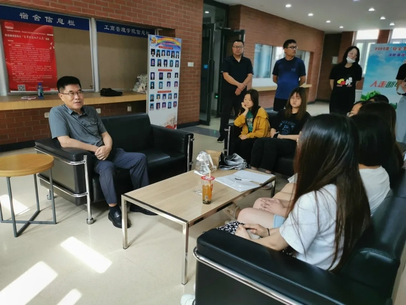 8月10日下午,工商管理学院党委书记郝树满、党委副书记兼副院长严立宁及学生工作办公室辅导员老师来到学生宿舍、研究生工作室,看望暑期留校学生。